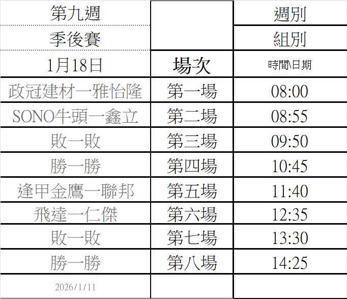 2025年 第二季第二循環賽程表